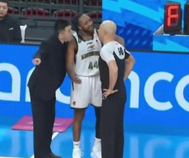 后續(xù)第二個技術(shù)犯規(guī),是在陳盈駿執(zhí)行罰球的時候,楊鳴跑到孫翌淼裁判的背后口吐芬芳。裁判忍無可忍將他驅(qū)逐。被吹罰2個T之后,楊鳴依舊咆哮技術(shù)臺。這時候首鋼球迷不忍了,一直在讓楊鳴閉嘴,并且要求他馬上滾出球場。